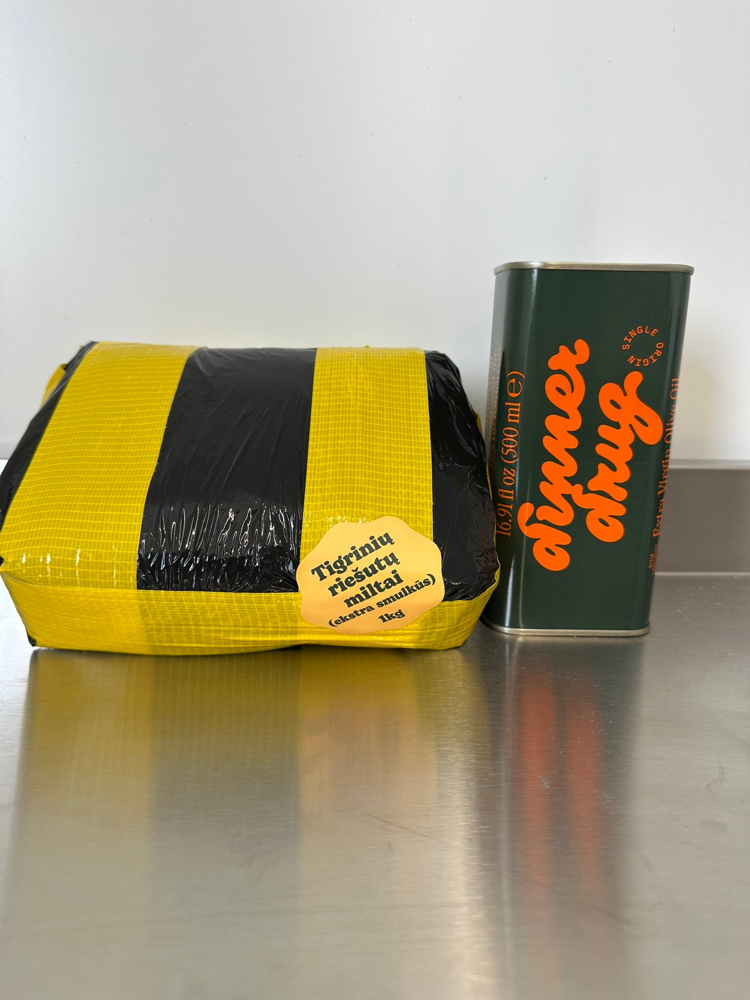 Rinkinys KONTRA+BANDA sujungia nusikalstamai sveikus ekstra smulkius tigrinių riešutų miltus ir nelegaliai skanų alyvuogių aliejų. Plius, perkant rinkinį - sutaupai.