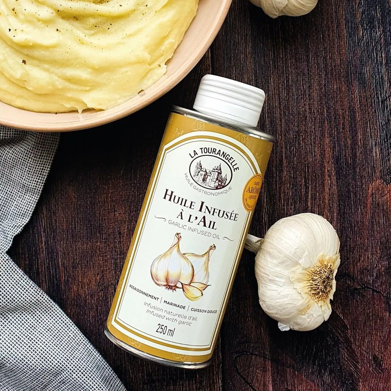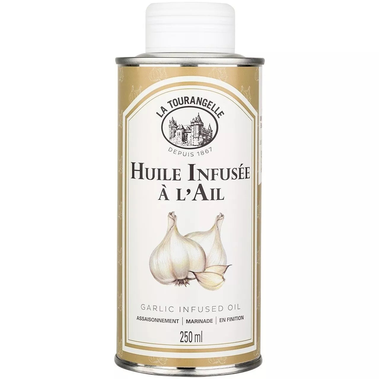 La Tourangelle česnakų skonio aliejus gaminamas infuzuojant aukštos kokybės aliejų su šviežiu, aromatingu česnaku. Šis procesas leidžia išgauti subtilų, tačiau išraiškingą česnako skonį, kuris puikiai dera su įvairiais patiekalais. Aliejus idealiai tinka salotų padažams, marinatams, kepimui ar kaip baigiamasis akcentas ant jau paruoštų patiekalų. Be pridėtinių cukrų, tinkamas vegetarams ir keto mitybai.